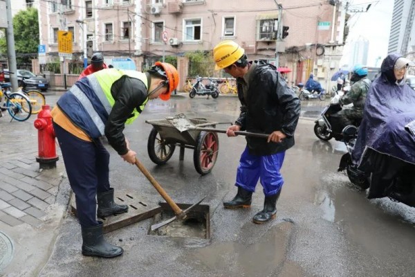 海岸君了解到,从昨晚10时至今天5时,上海汇成集团有限公司下属徐汇市政养护公司出动了2辆吸泥车、2辆冲水车、2辆抓泥车、2辆污泥运输车、4辆2吨卡车,近30名工作人员全力清理辖区内各路段下水道,确保路面及时排水。