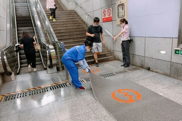 大雨到来前,地铁各站对防汛板、集水井、抽水泵、沙袋、阻水带等防汛物资提前全面检查,确保物资齐全、状态良好。以轨交长寿路站区为例,站区共测试车站46处横截沟的排水能力,检查车站各出入口防汛板34块,结果均为正常。同时加强对易积水区域的巡视,发现问题立刻上报。