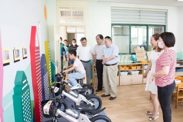 在刘军和金山卫镇党委委员车晨远的提议下,夏瑛园长还陪同我观摩了孩子的环保社团活动。先是遇到一个叫魏子康的大四班男孩,他额头冒着细汗仍然在飞快骑动自行车。原来这是个骑车发电装置,可以将男孩的动能转化为电能并照亮整个教室。这让我感到很兴奋,我问他能否把教室里发的电输送到家里,他说目前还不行。我让他长大后再想办法突破这个技术问题,他很乐意地答应了下来。