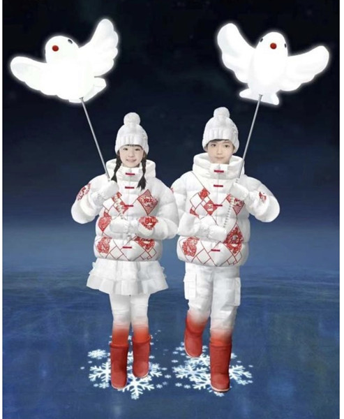 陈鹏这次负责了开幕式表演服装超过50%的设计工作,在保留剪纸、中国结、山水画、冰灯这些传统元素的同时,设计上更加有年轻化与时尚度。以《千里江山图》为灵感的举旗员运动套装、可爱的和平鸽童装、洋溢着热情的速滑服等,这些不同类型的服装以时尚之名,向世界展示当下中国年轻人的风采。(小雪)