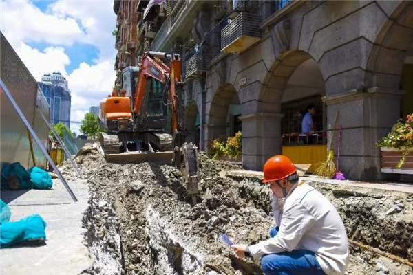 类似的情况还有许许多多,开挖常会因计划之外的管线占位而被迫暂停。为了便于与兄弟单位沟通确认,第一时间完成方案修改,我的“办公桌”便移到了现场,久而久之,武康路上几家管线公司有多少地下管线、不同时间段哪个停车场有空位、公厕几点关门我都能倒背如流,直接被同事们封了个“活地图”的称号。