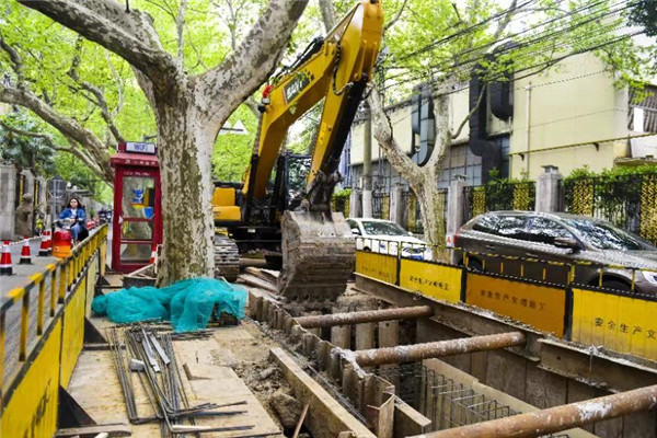 武康路架空线入地工程现场