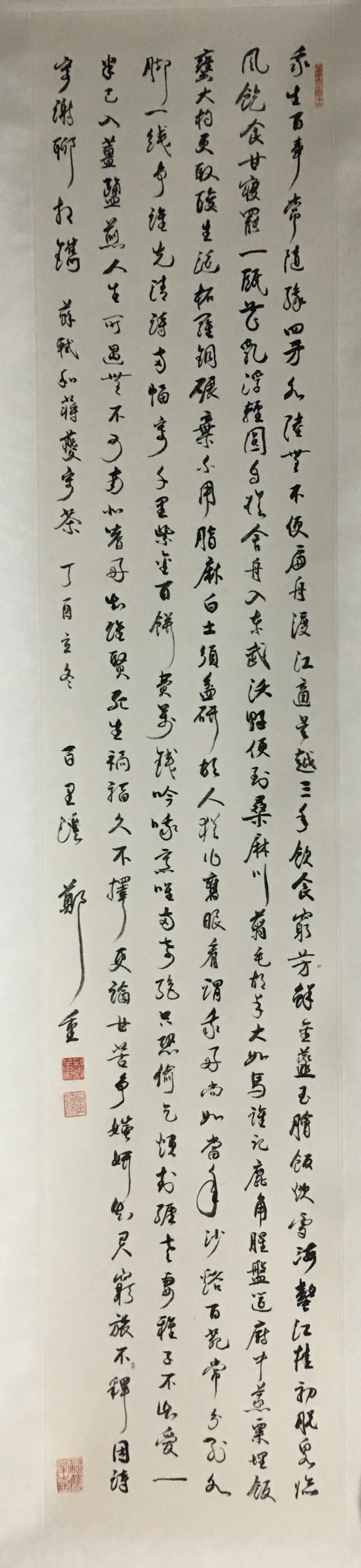 郑重书写过一副对联,原为张伯驹先生的旧藏,“十有九输天下事,百无一个眼中人。”当年去探访张伯驹的时候,一代贵公子腰里系着稻草绳,但淡定自若,口吐金兰的气场全然未减。张伯驹告诉郑重对联是袁寒云书,“乃书生意气也。”