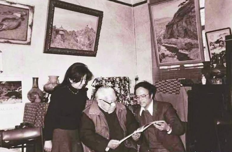 邱瑞敏夫妇造访周碧初老师家,把出版的画册请老师指点