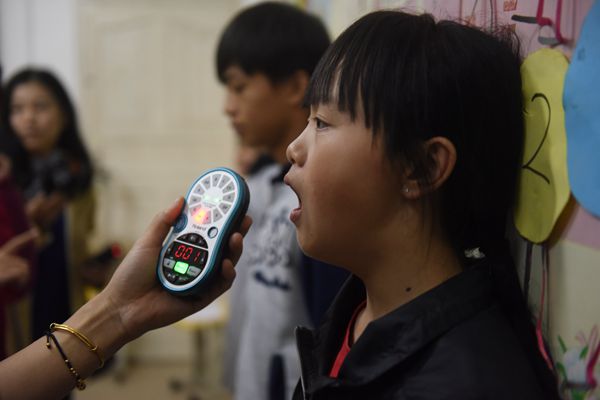 所有与常规训练相关的名词“上颚”“丹田”“圆润”全无用处。摸着李博和张咏的咽喉和腹部,孩子们感受着振动。最初的音体教室有一面墙的镜子,李博拿着压舌棒压着他们许久不用、在口腔里乱转的舌头,让他们对着镜子感受舌头的力量。压舌棒的灵感来自县城小卖部里的冰棍,李博一买一大堆,让大家吃完冰棍,留下木棒当教具。含着李子或糖果,让口腔打开,并记住打开的幅度。还要请老师用手语比划“小狗”,教他们像小狗喘气那样练习腹部肌肉的弹性;比划“闻花”,学会做深呼吸;吹很多气球,练习肺活量……