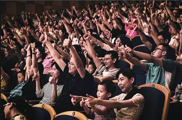 观众先是鼓掌,随后迅速变成竖起大拇指向孩子们致意