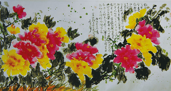 从这次会面,贤弟不断签赠送我几乎他的全部著作还有他的丹青牡丹和花鸟山水画作。幅幅画意浅浅,但提款识文却往往意味隽永,显示了文人画的特色。如洒洒洋洋写上:不羁情牵,不为世迷。野塘远华,芳菲自主,悠然相望,修德若斯。一幅小画,几句短文,反映了贤弟像荷花一样,出淤泥而不染;写出他如自己修竹一身高风亮节不畏风霜的品德和精神面貌。这些画,愚珍藏装裱起来,每次欣赏,都感到赏心悦目,似乎贤弟在旁边说:大哥,人生要豁达一点,一切都是过眼浮云。如今,贤弟驾鹤西去,唯留巨著和书画脍炙人口,永存人间。