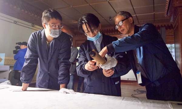 工作人员在点交(本文布展照片均由上海博物馆提供)