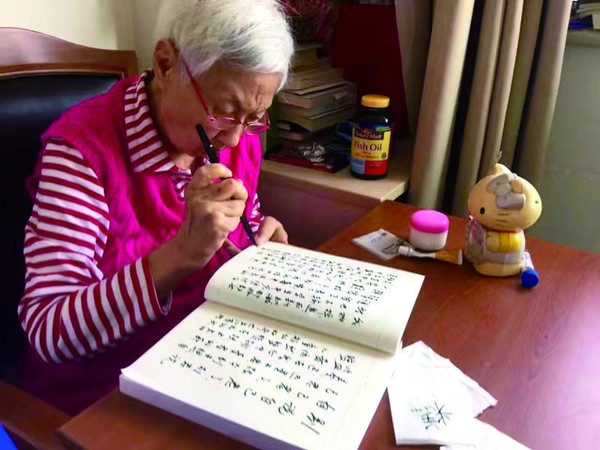 “林妹妹”是较真的。热爱生活,好奇,执着。她总为少小辍学而遗憾,于是和自己较真,活到老学到老,去积攒人生的丰满、艺术的厚重。比起3年前,王老住所的家居和摆设并没有什么变化,与孙道临先生的结婚照仍被擦得一尘不染。只是,墙上多了一幅字帖,桌上多了一只地球仪,这便是王文娟如今的生活日常。她写字画画,修身养性。她似年轻人,心中永远充满了问号。女儿去意大利旅游,她转着地球仪,找到那个像靴子的国家,津津有味听着当地的风土人情;外孙在大学里学习清洁能源和绿色建筑,她非要搞明白这是什么,之后出门看到某幢大楼的太阳能接收装置,老太太便懂经地说:“这个就是环保建筑”。她关心起时局,便打电话邀请能说会道、通晓时事的老友上门“讲课”,从特朗普到经贸战,也能摸个头头是道。
