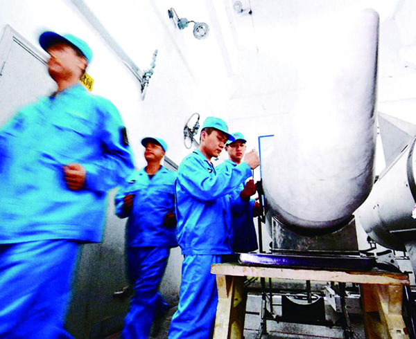 图说:战士们进行导弹保养训练。导弹日常维护十分重要,尤其导弹发动机常用的固体推进剂受环境影响,容易出现老化现象,必须严格管理。解放军画报
