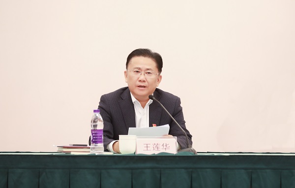图说:上海科技馆党委书记王莲华发表主题交流