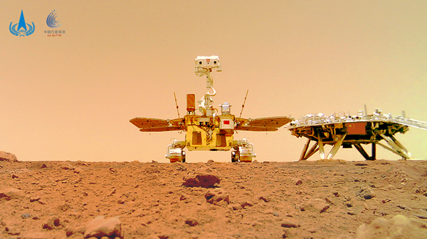图说:6月11日公布的由祝融号火星车拍摄的“着巡合影”图 来源/新华社发 国家航天局供图
