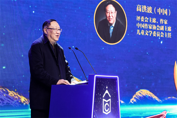 高洪波在2020年陈伯吹国际儿童文学奖颁奖仪式现场