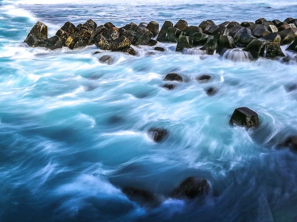 假如拍摄岛礁和岸滩等海景,操作原理十分相近(图3:海堤),用此模式可以获取海面雾化的光晕效果,能取得很强的酷眩感和渲染感。
