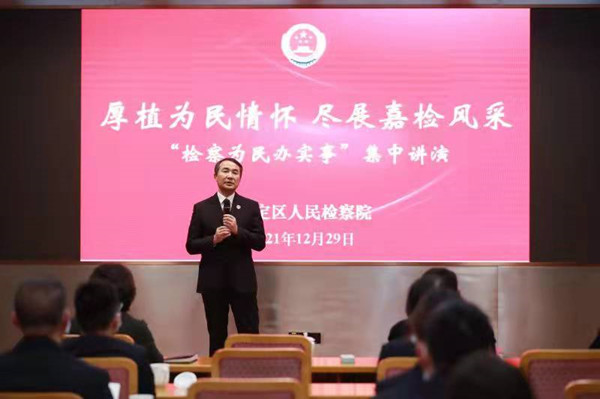 讲演活动中,来自嘉定检察院7个业务部门和4个行政部门共12名干警代表,声情并茂地现场演讲。《不让凉菜凉了群众的心,公益诉讼守护“舌尖上的安全”》《为你拨开云雾,愿你绽放微笑》《严惩犯罪扫“雷区”,织密安全防护网》《支持起诉,为社会治理贡献检察力量》等主题演讲,展现了检察机关的为民情怀和忠诚履职。