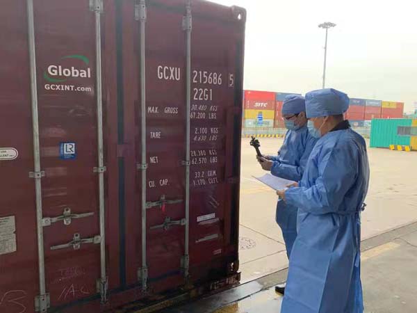 图说:外港海关进行首票国际中转集拼实货测试 徐天宇/摄(下同)