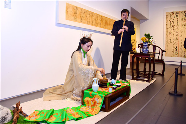 “书法展厅是书法艺术的一部分。花道和家具专家先来审看作品、考察空间,提出布展的思路。你写董其昌那路的草书,我就给你般配明式家具;你的书风追宋元,那么演员就穿宋朝的衣服在书法前吹洞箫……这样的布展商是过去没有的,但我们需要布展者有艺术的灵气,也希望他们能成长为有书法专业素养的特色展商。”