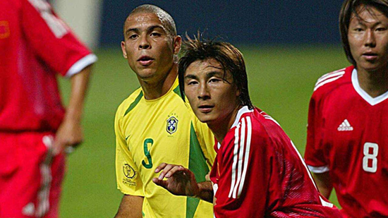 图说:2002年世界杯,李玮锋盯防罗纳尔多