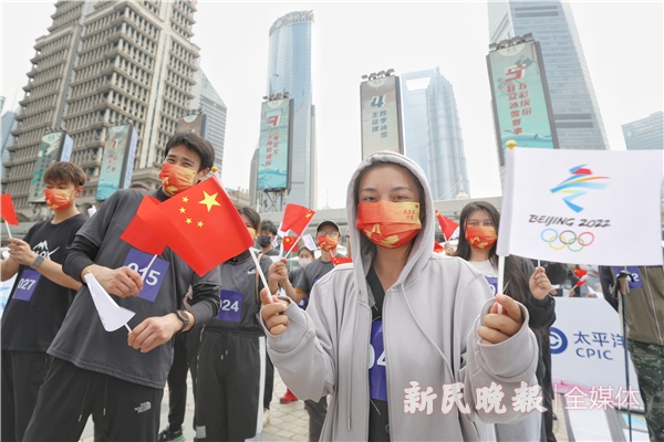 图说:上海市民喜迎北京冬奥会倒计时100天 新民晚报记者 李铭珅 摄 下同