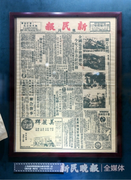 在上海邮政博物馆陈列了一张1951年4月1日的《新民报(晚刊)》(《新民晚报》前身)。据秦国敏介绍,这是上海邮政管理局邮发的第一份《新民报(晚刊)》,自此之后,上海市民订阅《新民晚报》,基本上都是由邮局投递的。