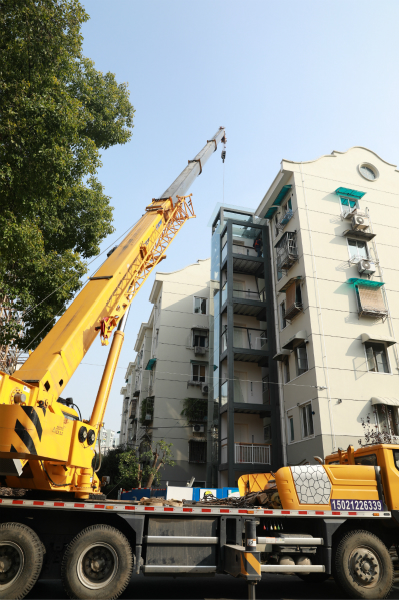2018年12月,历经4年,1号楼加装电梯竣工了:灰蓝色的电梯钢结构沿着淡黄色的墙壁攀爬而上,直达6层楼。居委会给每户居民都配发了电梯卡,居民乘电梯可以刷卡,老人们开心地坐着电梯上上下下,像个孩子,有的眼中泛着泪花。